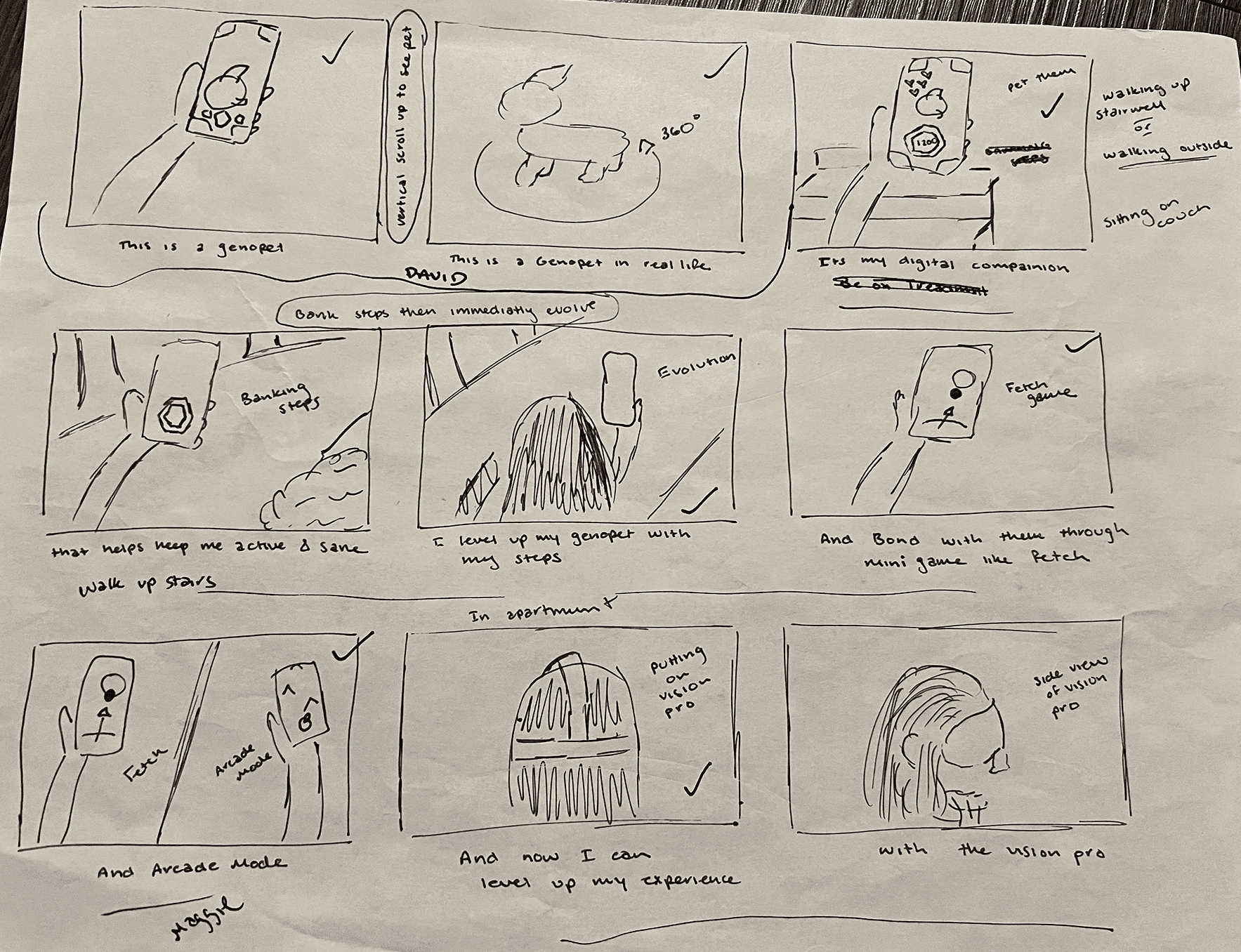 I designed the trailer to tell a layered story. It opens with a familiar moment—viewing your Genopet on a phone—before revealing the AR version floating in your living room via Vision Pro. That hook grabs attention and sets up the rest of the narrative: how Genopets makes staying active fun, and how Vision Pro offers a new, more immersive way to bond with your pet.