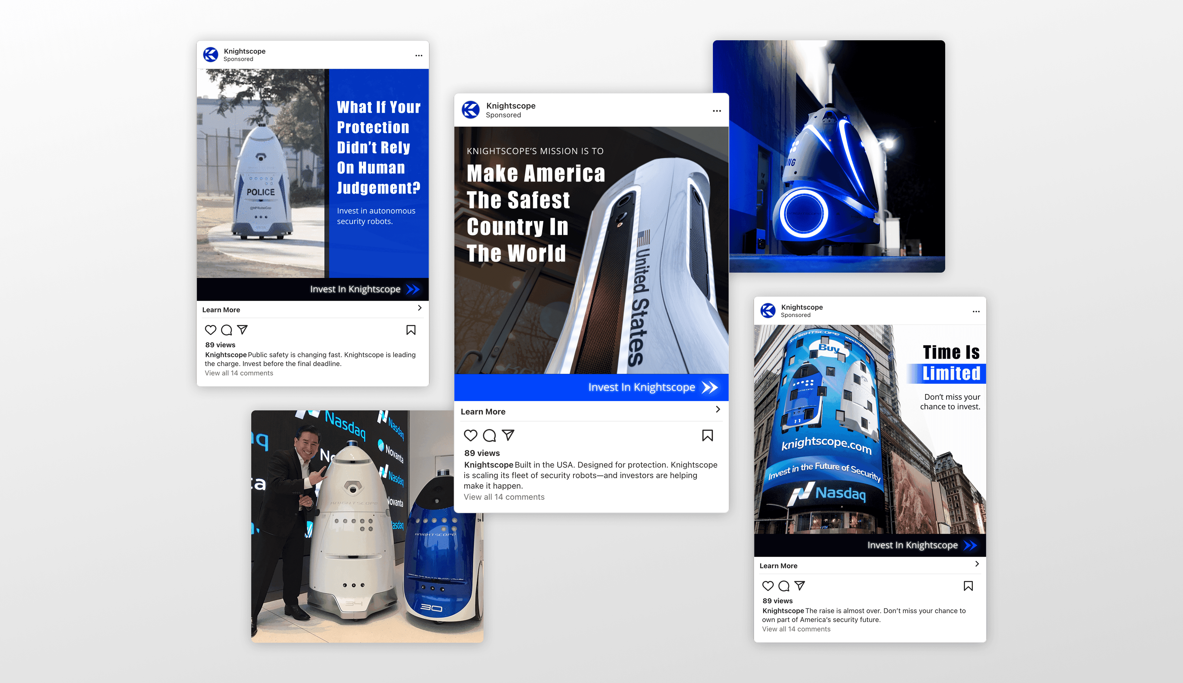 Knightscope develops fully autonomous security robots designed to protect public and private spaces. To support their multi-phase equity crowdfunding campaign ahead of a successful NASDAQ listing, they needed a campaign presence that inspired trust, urgency, and action.